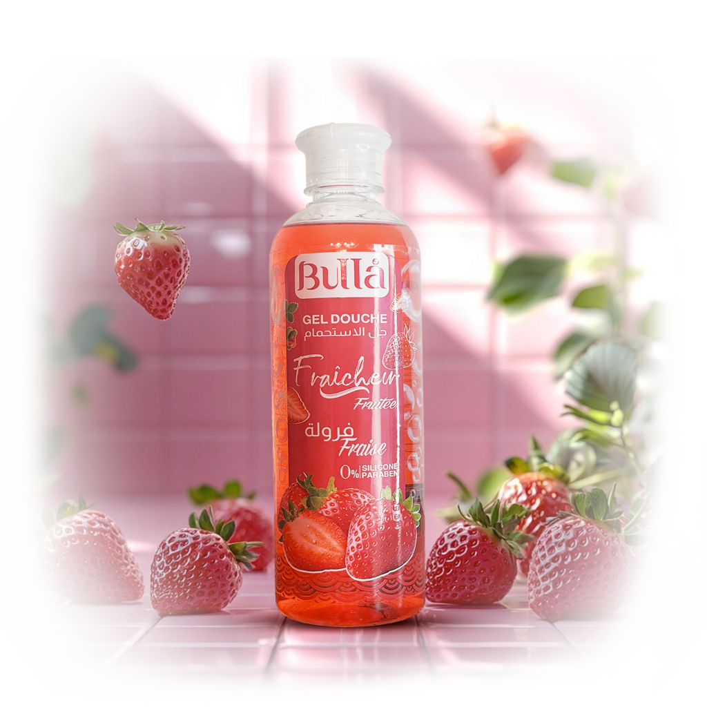 Bulla vous aide à garder votre peau saine grâce à sa large gamme de produits d’hygiène aux formulations non agressives qui contribuent à prendre soin de votre peau, le gel douche fraicheur fruité fraise est l’un de ces produits de la gamme, qui a été développé par des dermatologues et formulé pour but d’apaiser votre peau en douceur.